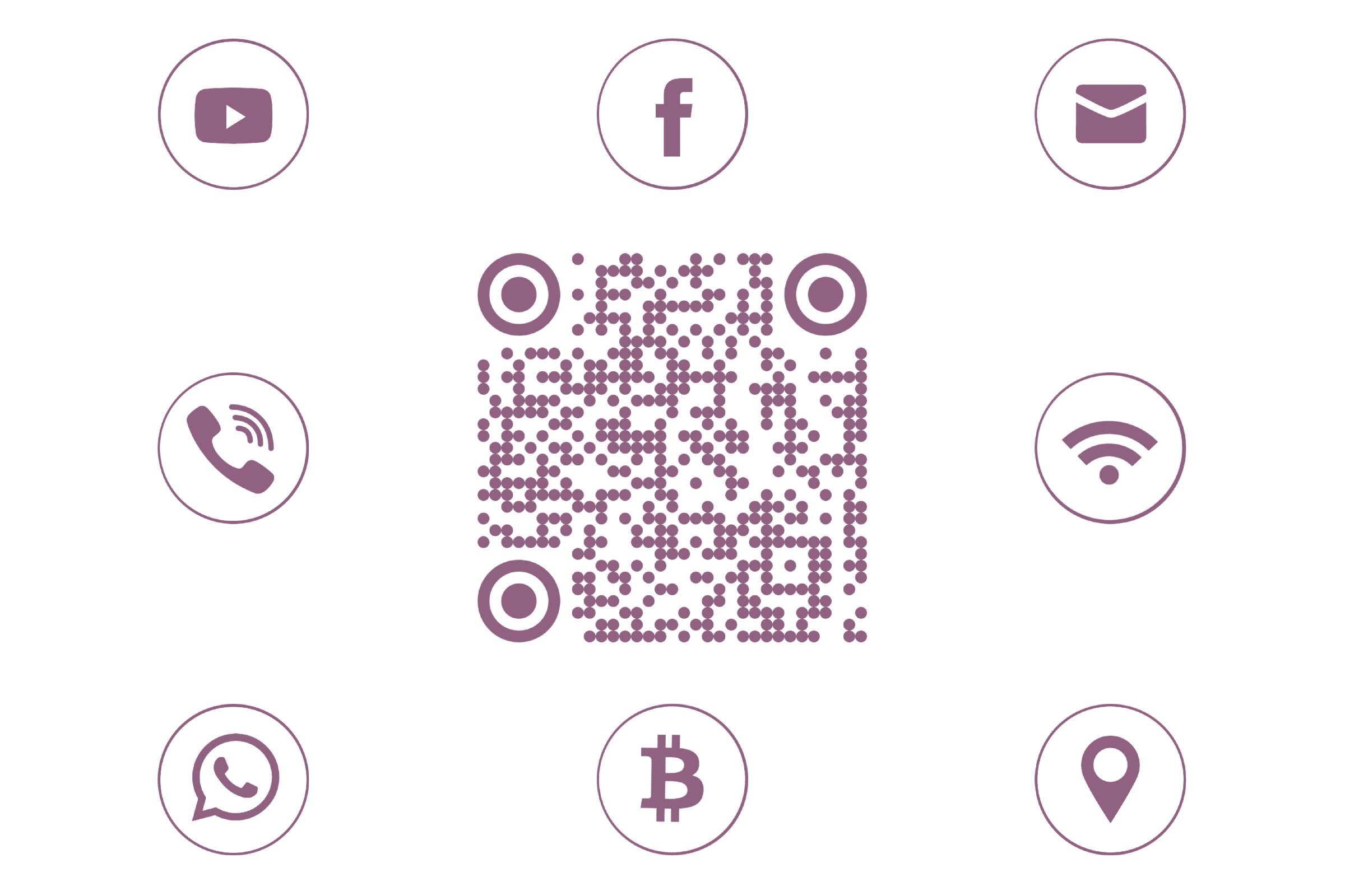 - Multiple QR code types (URL, text, email, phone, etc.)